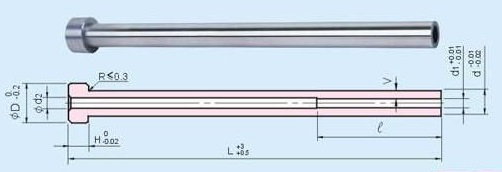 頂針、司筒是模具行業(yè)最常用零部件。頂針與司筒配合使用。司筒零件最典型的特點是內孔為臺階孔,臺階孔內徑相差0.5~1.0mm。該臺階孔的加工,是司筒零件整個加工過程中最大的難點。