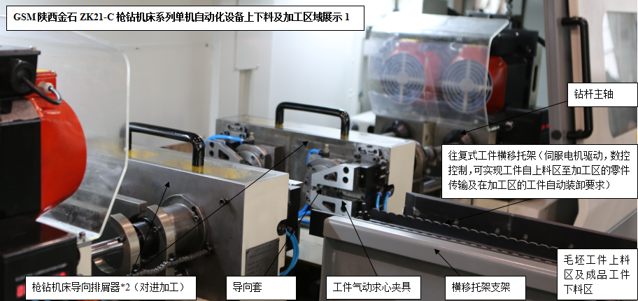 針對(duì)槍鉆加工領(lǐng)域特點(diǎn)和不同用戶(hù)的設(shè)備需求,陜西金石設(shè)計(jì)生產(chǎn)研發(fā)的ZK21-C槍鉆機(jī)床系列單機(jī)自動(dòng)化產(chǎn)品(人工低強(qiáng)度參與的上下料、自動(dòng)裝卸、自動(dòng)加工),可以使得用戶(hù)在應(yīng)對(duì)大批量軸類(lèi)零件的精密深孔加工場(chǎng)合擁有了更多更好的選擇。